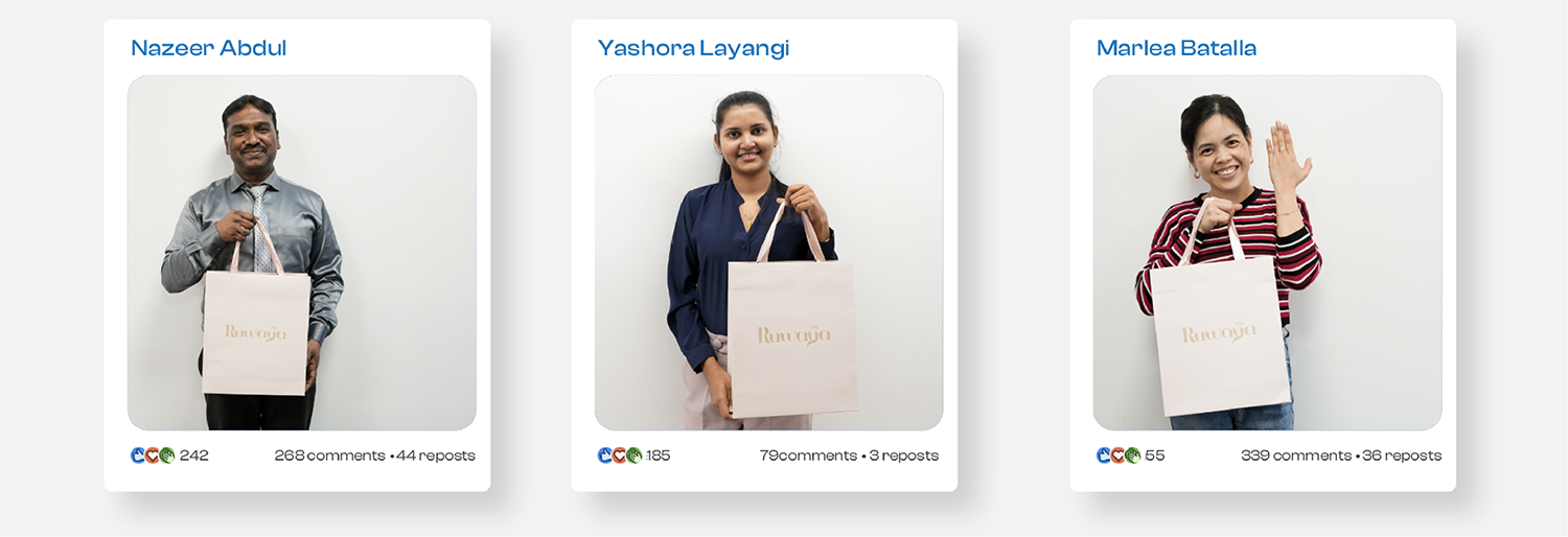 ويسرّنا تكريم الزملاء التالية أسماؤهم، الذين حققت منشوراتهم أعلى مستويات التفاعل خلال الحملة: